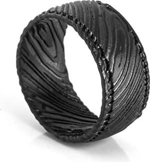 Orbis Ring | Damaskus Stahl Ring Frauen Herren Edelstahl Damaszener - Mattschwarz - US 11