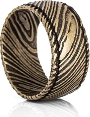 Orbis Ring | Damaskus Stahl Ring Frauen Herren Edelstahl Damaszener - Messing - US 11