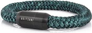 Portus Segeltau Armband | Magnetischer Kapselverschluss Armschmuck Damen Anker Herren Maritim - Mattschwarz - Grün 22cm