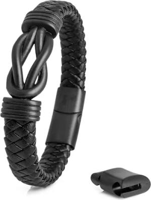 Serpent Lederarmband mit Magnetischen Verschluss - Armschmuck Damen Herren Edelstahl Armband Mattschwarz 19cm