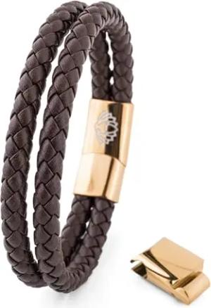 Simplicitas Lederarmband | Magnetisch Premium Armschmuck Frauen Herren Geflochten Männer Handgefertigt Armband - Gold - Braun 21cm