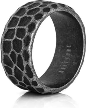 Terra Ring | Fels Granit Gehämmert Ring Herren Edelstahl Designer Antik-Silber - US 8