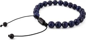 Venatio Perlenarmband | Elastisches Armband Armschmuck Damen Herren Halbedelsteine Beads - Schwarz-Lapis Blau 18cm