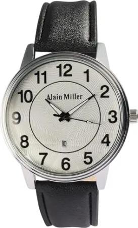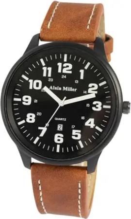 Herrenuhr mit Lederimitationsarmband, schwarz/wiß/silberfarben