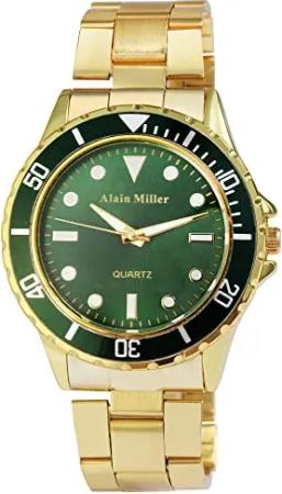 Herrenuhr–Edelstahl Armbanduhr Leuchtzeiger Analog Quarz 2800012 (goldfarbig/grün)