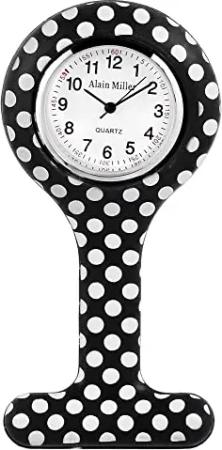Schwesternuhr Weiß Schwarz Punkte Analog Quarz Metall Silikon Krankenschwester Ansteckuhr