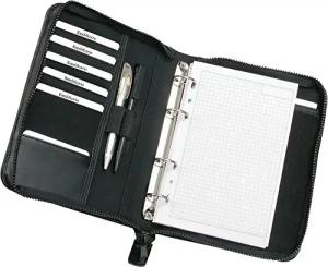 30006 Ringbuchmappe A5 LUINO, Businessmappe aus FINEtouch-Lederimitat, Mappe mit Ringmechanik, 40 karierte Blätter, Reißverschluss,Geschäftsmappe schwarz, Notizmappe ca. 25 × 17,5 × 4 cm