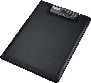 31500 - Schreibmappe BRESCIA im DIN A4 Format, Businessmappe aus Lederimitat, Dokumentenmappe in schwarz, Mappe ca. 33 x 25 x 2 cm, mit Taschenrechner als Clip