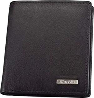 42302 Mini Geldbörse im Hochformat, aus echtem Leder, mit Alassio Metallemblem, innen mit Carbonoptik Münzbörse, 10 cm, Schwarz
