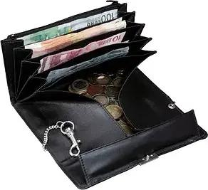 42066 - Kellnerbörse mit Metallkette und Karabinerhaken, aus Leder, ca. 17,5 x 10 x 3 cm, schwarz