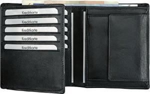 42246 - Geldbörse im Querformat, Herren und Damen Portemonnaie aus Echtleder mit Münzfach, 2 Scheinfächer 7 Kartenfächer für Kreditkarten, Brieftasche in schwarz, ca 10 x 12 cm