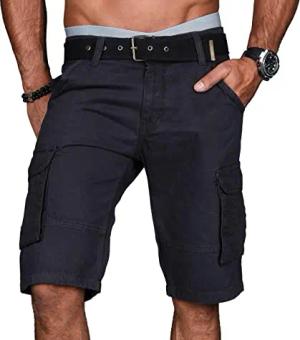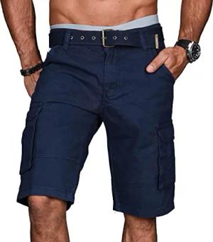 A.Salvarini Stylische Herren Cargo Short inkl. Gürtel Sommer Bermuda Kurze Hose Army Shorts AS-037 [AS-037-Navy-W34]
