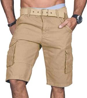 A.Salvarini Stylische Herren Cargo Short inkl. Gürtel Sommer Bermuda Kurze Hose Army Shorts AS-037 [AS-037-Beige-W38]