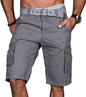 A.Salvarini Stylische Herren Cargo Short inkl. Gürtel Sommer Bermuda Kurze Hose Army Shorts AS-037 [AS-037-Grau-W29]