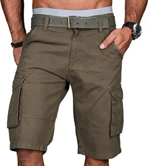 A.Salvarini Stylische Herren Cargo Short inkl. Gürtel Sommer Bermuda Kurze Hose Army Shorts AS-037 [AS-037-Grün-W32]