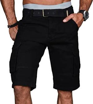 A.Salvarini Stylische Herren Cargo Short inkl. Gürtel Sommer Bermuda Kurze Hose Army Shorts AS-037 [AS-037-Schwarz-W33]