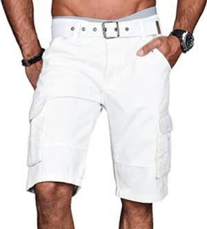 A.Salvarini Stylische Herren Cargo Short inkl. Gürtel Sommer Bermuda Kurze Hose Army Shorts AS-037 [AS-037-Weiss-W29]