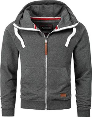 Herren Sweatjacke Kapuzenpullover Jacke Kapuze Hoodie Sweater AS192 [AS-192-Dunkelgrau-Gr.L]