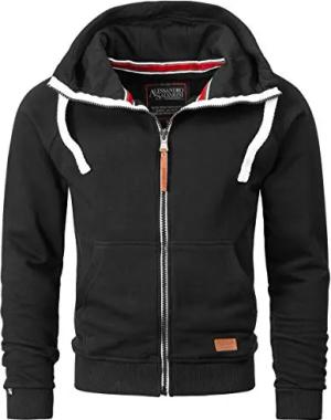 Herren Sweatjacke Kapuzenpullover Jacke Kapuze Hoodie Sweater AS192 [AS-192-Schwarz-Gr.M]