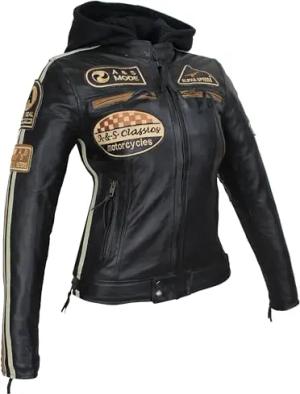 Damen Motorradjacke Lederjacke Damen Jacke mit Protektoren Lederjacke mit Kapuze Leather Jacket Biker Jacket Custom Jacke (DE/NL/SE/PL, Alphanumerisch, S, Regular, Regular, Braun Streifen)
