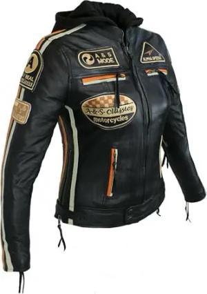 Damen Motorradjacke Lederjacke Damen Jacke mit Protektoren Lederjacke mit Kapuze Leather Jacket Biker Jacket Custom Jacke (DE/NL/SE/PL, Alphanumerisch, XS, Regular, Regular, Orange gestriffen)