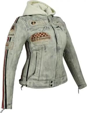 Damen Motorradjacke Lederjacke Damen Jacke mit Protektoren Lederjacke mit Kapuze Leather Jacket Biker Jacket Custom Jacke (DE/NL/SE/PL, Alphanumerisch, XS, Regular, Regular, Weiß/Cream)