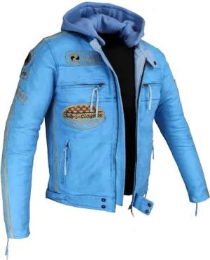 Herren Motorradjacke Lederjacke Biker Jacke mit Protektoren Leder Jacke mit Kapuze Leather Jacket Fashion Jacket Custom (DE/NL/SE/PL, Alphanumerisch, 3XL, Regular, Regular, Blau)