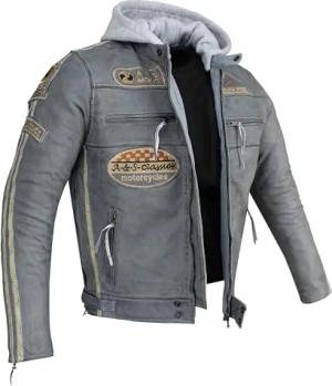 Herren Motorradjacke Lederjacke Biker Jacke mit Protektoren Leder Jacke mit Kapuze Leather Jacket Fashion Jacket Custom (DE/NL/SE/PL, Alphanumerisch, XS, Regular, Regular, Grau)