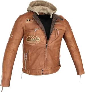 Herren Motorradjacke Lederjacke Biker Jacke mit Protektoren Leder Jacke mit Kapuze Leather Jacket Fashion Jacket Custom (DE/NL/SE/PL, Alphanumerisch, S, Regular, Regular, König Braun)