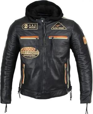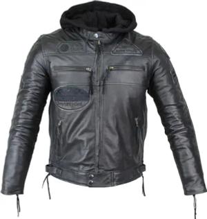 Herren Motorradjacke Lederjacke Biker Jacke mit Protektoren Leder Jacke mit Kapuze Leather Jacket Fashion Jacket Custom (DE/NL/SE/PL, Alphanumerisch, XS, Regular, Regular, Schwarz)