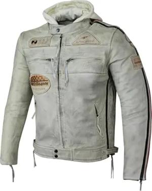 Herren Motorradjacke Lederjacke Biker Jacke mit Protektoren Leder Jacke mit Kapuze Leather Jacket Fashion Jacket Custom (DE/NL/SE/PL, Alphanumerisch, XS, Regular, Regular, Weiß)