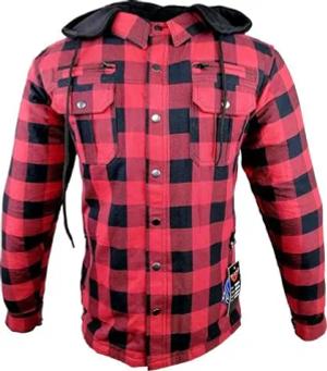 Motorradhemden Biker Aramid Hemdjacke Wasserdicht & Winddicht Motorrad Hemd mit Innenfutter & Kapuze Flanell Lumberjacke (DE/NL/SE/PL, Alphanumerisch, M, Regular, Regular, Rot)