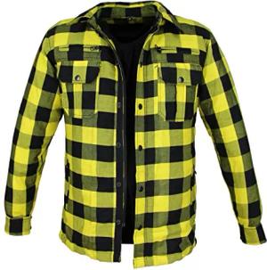 Motorradhemden Biker Hemdjacke Wasserdicht & Winddicht Motorrad Kariertes Hemd mit Protektoren Jacke Flanell Lumber Aramid (DE/NL/SE/PL, Alphanumerisch, XS, Regular, Regular, Gelb)