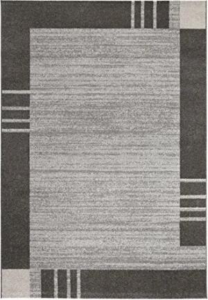 Webteppich moderner stilvoller Kurzflor Teppich robust und pflegeleicht aus 100% Polypropylen geeignet für Fußbodenheizung und Saugroboter 60 x 110 cm Bordüre Grau