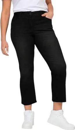 Damen große Größen Übergrößen Plus Size 7/8-Jeans Claire, Stretchkomfort, Geschnittener Saum, 5-Pocket schwarz 52 831930100-52