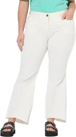 Damen große Größen Übergrößen Plus Size Jeans, ausgestellt, gerundeter Fransensaum schneeweiß 48 840347200-48