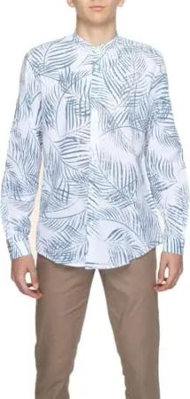 Herrenhemd mit Mao-Kragen, Seoul Slim Fit, Leinen, bedruckt, blau, S