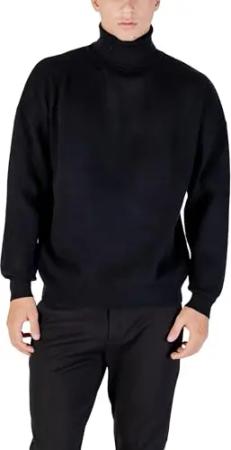 Rollkragenpullover aus Baumwolle mit Jacquardmuster 3D, MMSW01454-YA200066, Schwarz, Schwarz , Small