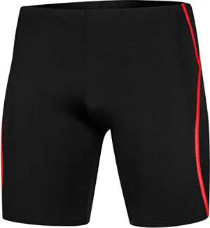 Schwarze eng anliegende Badehose für Herren + gratis eBook | UV Schwimmbekleidung Knielang | Mens Swim Trunks | Blake, Gr. M, Schwarz-Rot