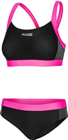 Damen Sport Bikini Set | Zweiteiler | sportliche Bademode | 2-Piece Swimsuit | Schwimmbekleidung | Schwimmbikini Aquafitness | Badebekleidung | Schwarz-Rosa, Gr. 38 | Naomi