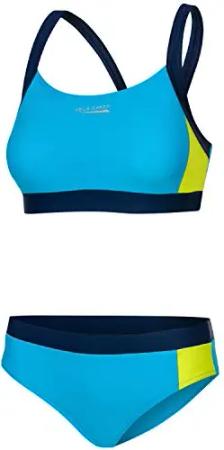 Damen Sport Bikini Set | Zweiteiler | Two Piece Swimsuit Fitness | sportliche Bademode | Bustier Schwimmbikini | Surfen | Pool | Wassersport | Hellblau-Gelb, Gr. 38 | Naomi