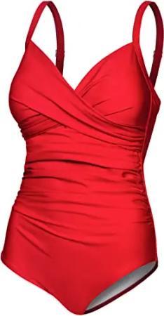 Vivian Badeanzug für Damen | Bademode Bauchweg | Badebekleidung Frauen | Damenbadeanzug einteilig elegant | Frauenbadeanzug Einteiler | One Piece Swimsuit - Rot - Gr 38