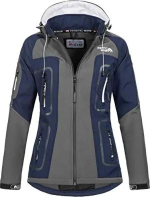 Damen Softshell Funktions Outdoor Regen Jacke Sport Kapuze AS181 [AS-181-Grau-Navy-Gr.S]