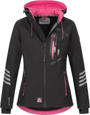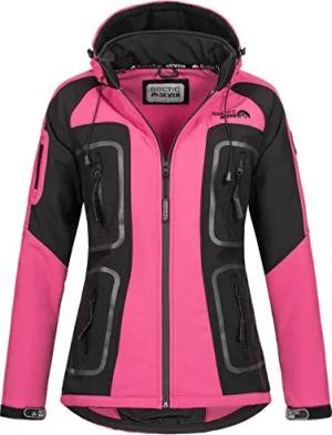 Damen Softshell Funktions Outdoor Regen Jacke Sport Kapuze AS186 [AS-186-Schwarz-Pink-Gr.XS]