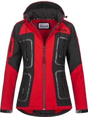 Damen Softshell Funktions Outdoor Regen Jacke Sport Kapuze AS186 [AS-186-Rot-Schwarz-Gr.XS]