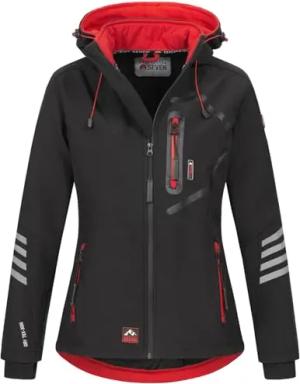Damen Softshell Funktions Outdoor Regen Jacke Sport Kapuze AS186 [AS-186-Schwarz-Rot-Gr.S]