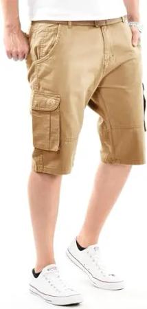 Herren Cargo Shorts (29W-42W) Regular Fit Kurze Hosen mit Gürtel - 100% Baumwolle Obermaterial, Sommer Cargohose Männer - AS-409 Beige W38