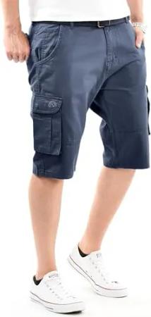 Herren Cargo Shorts (29W-42W) Regular Fit Kurze Hosen mit Gürtel - 100% Baumwolle Obermaterial, Sommer Cargohose Männer - AS-409 Navy W36
