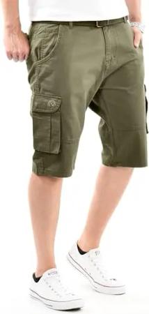 Herren Cargo Shorts (29W-42W) Regular Fit Kurze Hosen mit Gürtel - 100% Baumwolle Obermaterial, Sommer Cargohose Männer - AS-409 Olive W34
