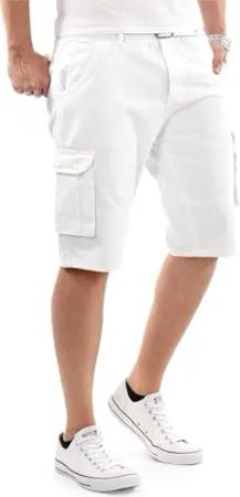 Herren Cargo Shorts (29W-42W) Regular Fit Kurze Hosen mit Gürtel - 100% Baumwolle Obermaterial, Sommer Cargohose Männer - AS-409 Weiss W30